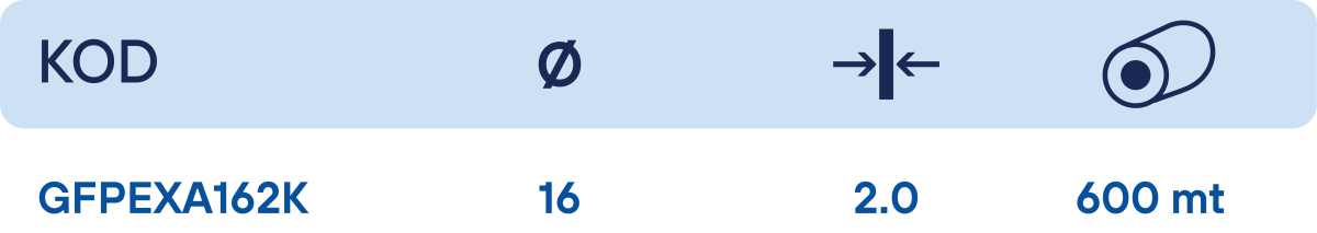 16*2,0 Yerden ısıtma borularının duvar geçişlerinde koruma için kullanılır.